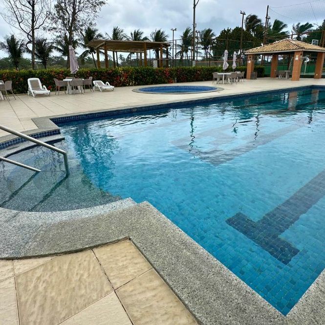 O condomínio é um dos mais completos da região, com quadra de tênis, quadra poliesportiva, quadra de areia, campo de futebol, academia, playground e piscina. Espaço, segurança e estrutura perto do mar.