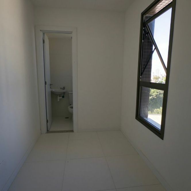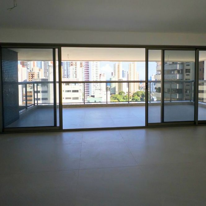 Com 174,95m² de área privativa, este apartamento oferece 4 suítes, dependência completa, 3 vagas soltas, depósito privativo e uma planta funcional, em torre única com um apartamento por andar.