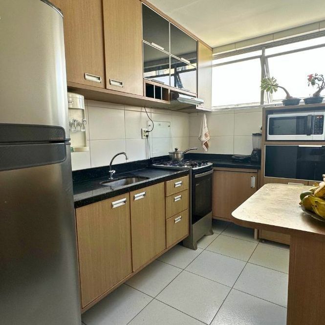 Com 103m² bem distribuídos, este imóvel conta com 3 quartos (sendo 1 suíte), varanda, sala ampla, 3 banheiros, cozinha, área de serviço e dependência completa. O edifício oferece elevadores, portaria 24h e 1 vaga de garagem.