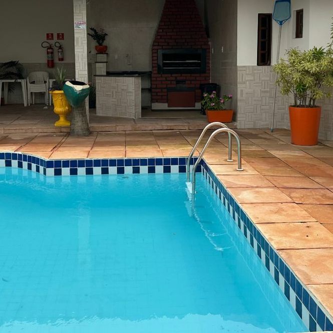 O condomínio conta com piscina, área verde e estrutura tranquila, a poucos minutos da praia.