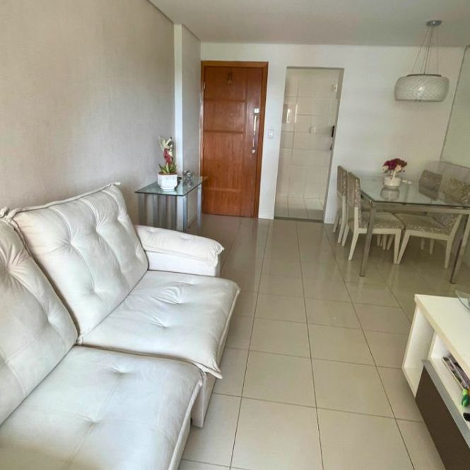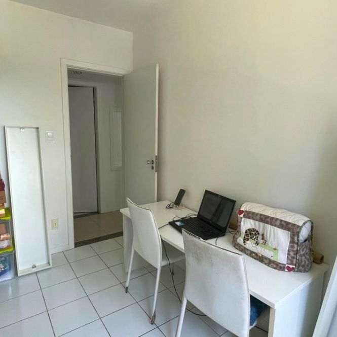 Este apartamento tem planta funcional, com varanda, sala para dois ambientes, três quartos (sendo uma suíte), cozinha com área de serviço e dependência completa. O condomínio oferece piscina, quadra, academia, salão de festas, churrasqueira e portaria 24h.