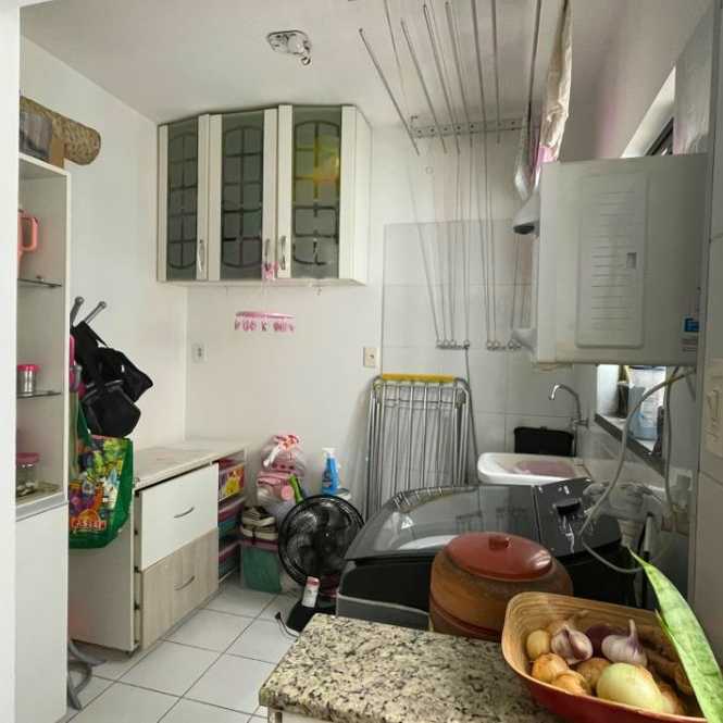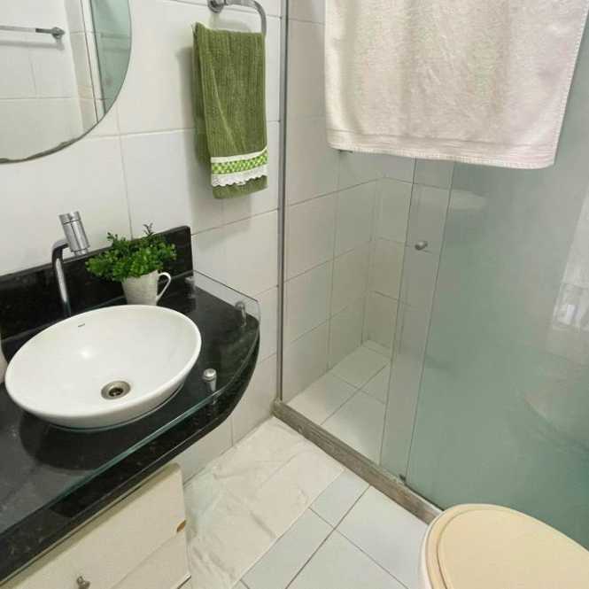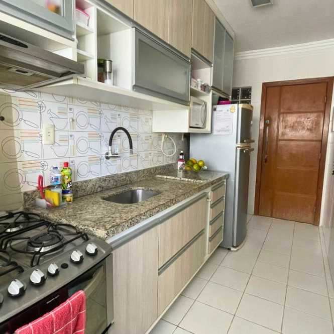 Este apartamento tem planta funcional, com varanda, sala para dois ambientes, três quartos (sendo uma suíte), cozinha com área de serviço e dependência completa. O condomínio oferece piscina, quadra, academia, salão de festas, churrasqueira e portaria 24h.